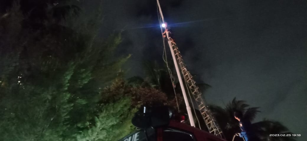 Anggota Damkar Gerak Cepat Ganti Tali Bendera Merah Putih di Kantor DPRD Makassar yang Terputus