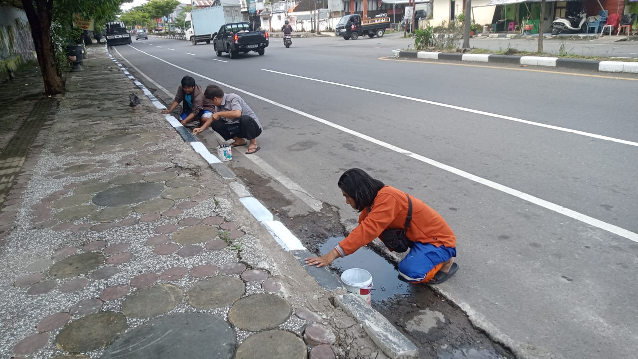 Lurah Mampu Pantau Kegiatan Pengecatan Kanstin di Jalan Nusantara