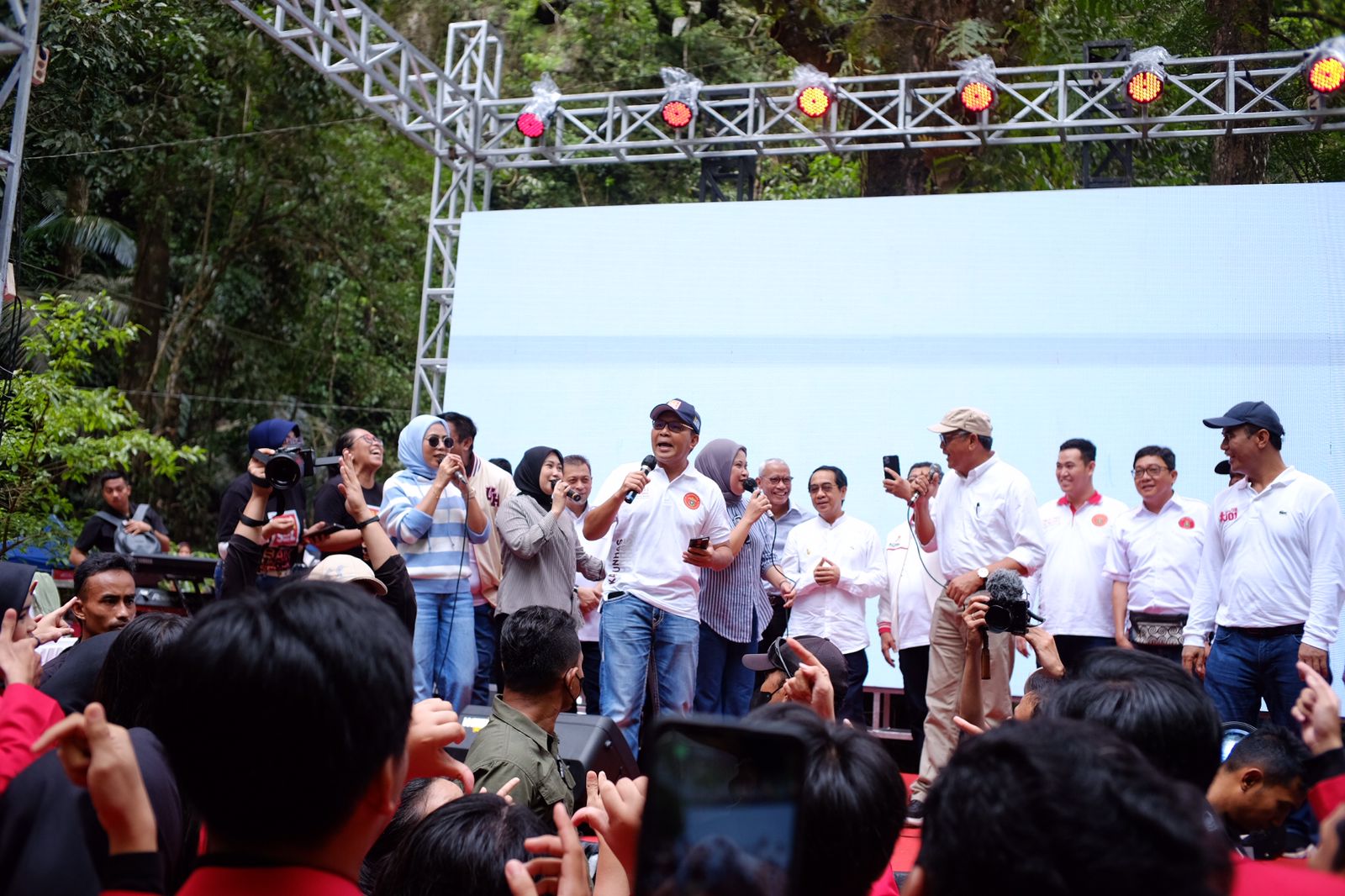 Keduanya dan para pengurus wilayah itu bahkan bernyanyi bersama di panggung lalu diikuti semua alumni.