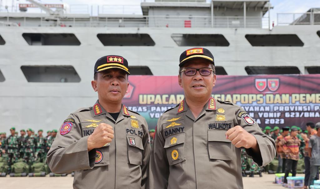 Kasatpol PP Dampingi Walikota Makassar Hadiri Upacara Keberangkatan Yonif 721/Makkasau dan Yonif 623/Bahkti Wira Utama