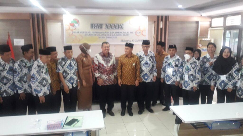 SIMAKBERITA.COM, MAKASSAR – Kegiatan Rapat Anggota Tahunan (RAT) ke 39 Puskoppabri (Pusat Koperasi Purnawirawan dan Warakawuri TNI-Polri) Sulselbar yang berlangsung di Aula Malino, Badan Diklat PU jalan Nuri Makassar, Senin (8/5/ 2023 berlangsung penuh Hikmad dan sukses.