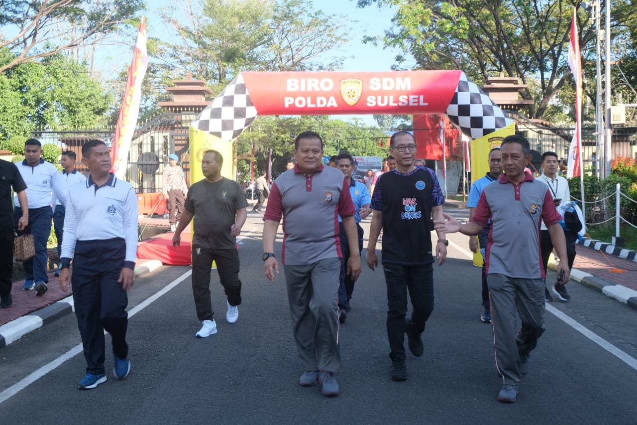 Semangat Sinergitas, Kapolda Sulsel dan Ratusan Personil TNI-Polri Jalan Santai Bersama, Peringati Hari Bhayangkara ke 77