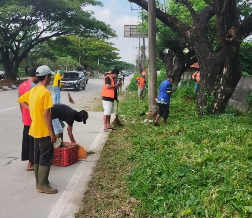 Wujudkan Keindahan Kota, Satgas Kebersihan Kec. Mariso Bersihkan Jalan Metro Tanjung Bunga