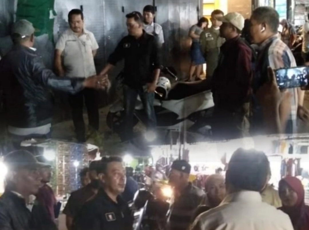 Dalam peninjauan itu dilakukan malam hari dan beberapa pedagang pasar juga ada dilokasi dan tampak para pedagang berdiskusi terkait peninjauan ini