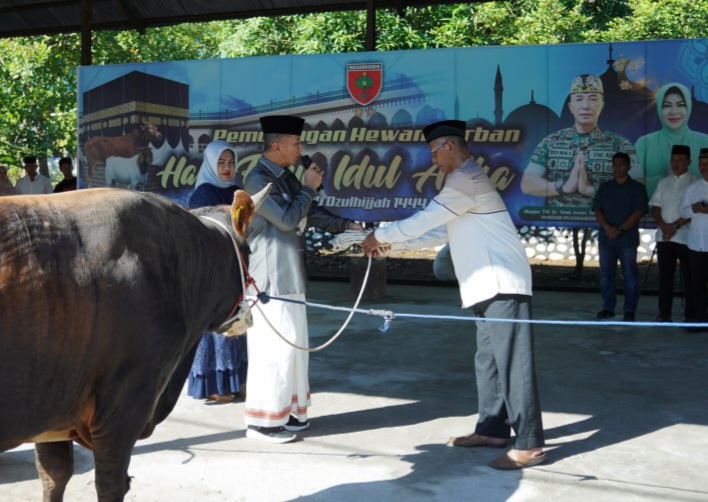 Mayjen Totok menyampaikan bahwa penyerahan hewan qurban disamping melaksanakan salah satu sunnah yang dianjurkan dalam agama Islam, juga merupakan bentuk kepedulian Kodam XIV/Hasanuddin.