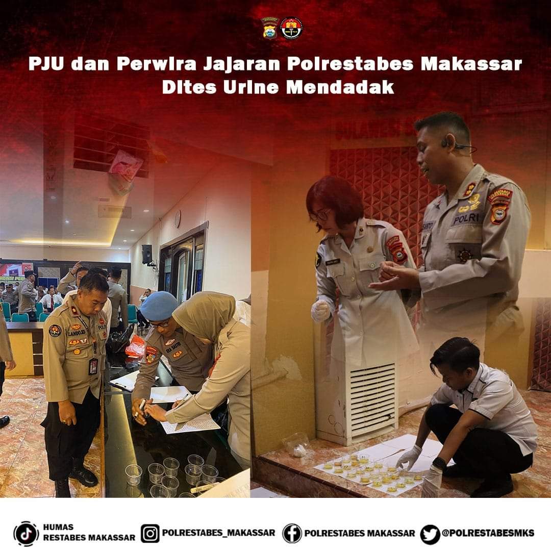 Cegah Penyalahgunaan Narkoba, PJU Dan Jajaran Polrestabes Makassar Dites Urine Dadakan