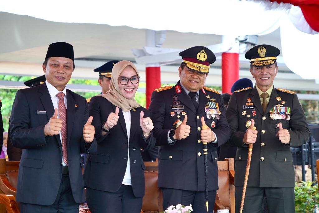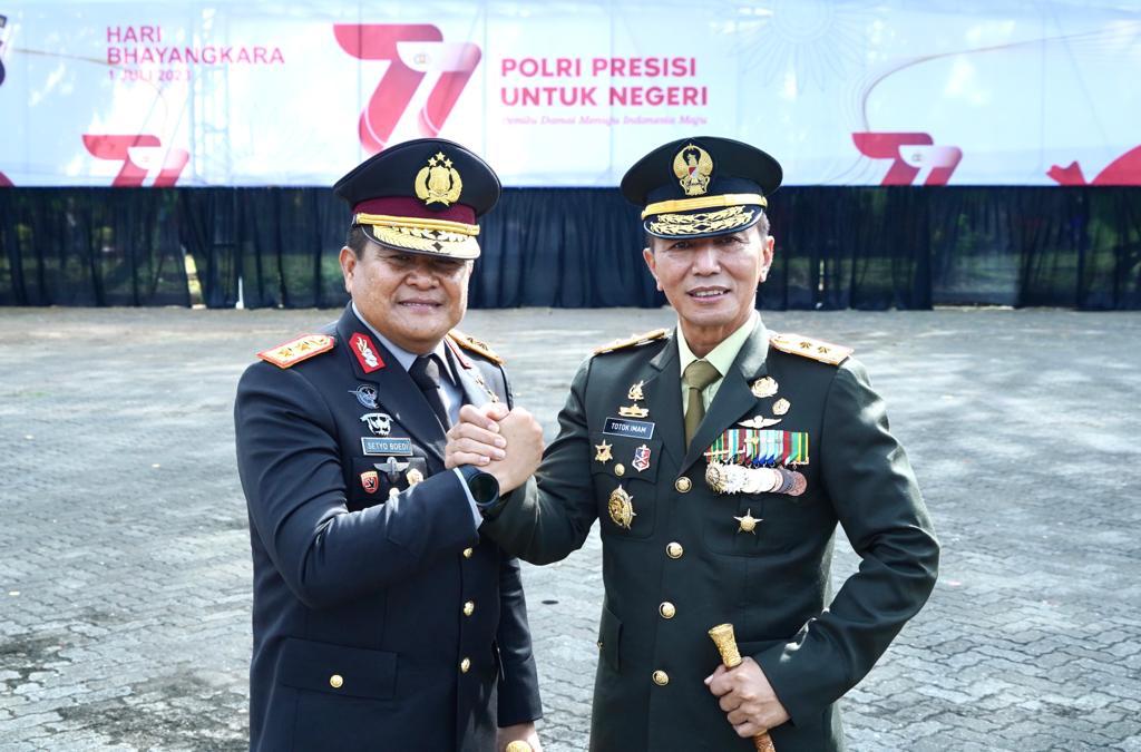 Mayjen Totok pada kesempatan ini menyampaikan ucapan, selamat atas bertambahnya usia Polri dan memberikan penghargaan atas kerja keras Polri dalam menegakkan hukum di negeri ini.