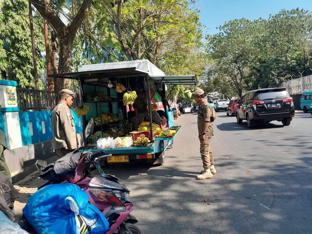 Satpol PP BKO Kecamatan Panakkukang Tertibkan Secara Humanis PK5 yang Gunakan Bahu Jalan