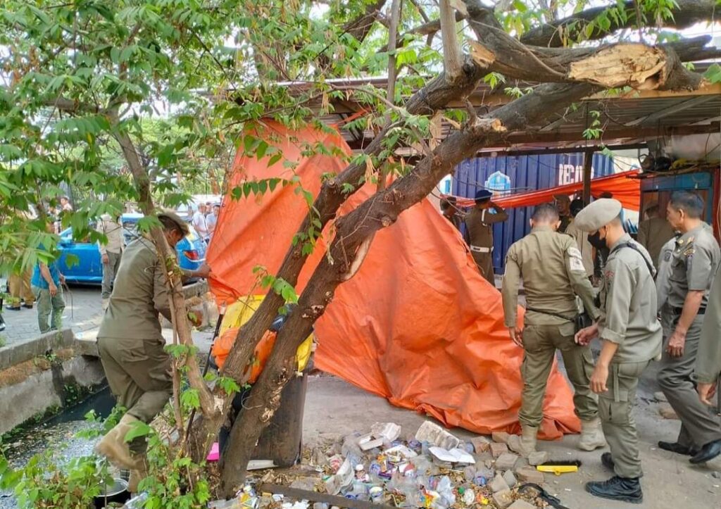 SIMAKBERITA.COM, MAKASSAR – Satuan Polisi Pamong Praja (Satpol PP) Kota Makassar mendampingi Dinas Pertanahan melakukan kegiatan pengembalian fungsi Fasilitas Umum (Fasum), Senin (23/10/2023).
