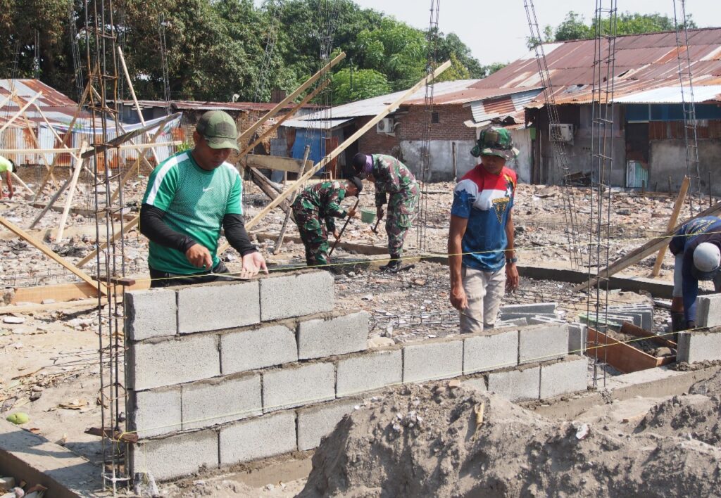 SIMAKBERITA.COM, MAKASSAR – Proses pembangunan rumah baru milik warga Asrama TNI Baji Gau, yang tertimpa musibah kebakaran pada malam (29/10/2023) lalu, masih terus berlanjut. Para Prajurit Kodam XIV/Hasanuddin bersama warga sekitar nampak bahu-membahu menyelesaikan proses pembangunan.
