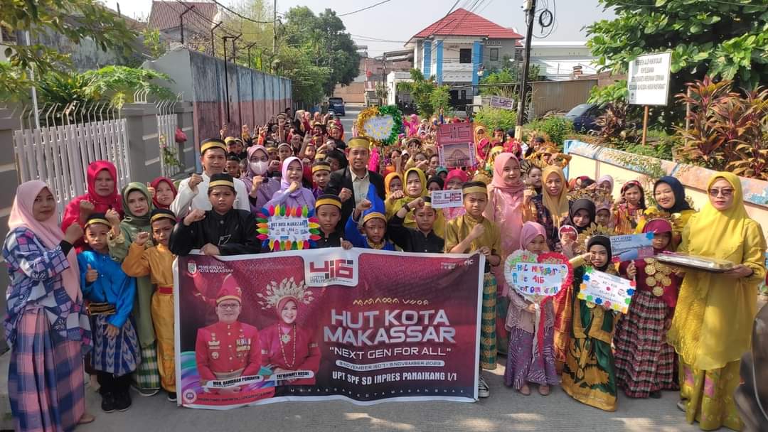Peringati HUT Kota Makassar Lurah Karampuang Bersama Murid SDI Panaikang 1/1 Gelar Long March