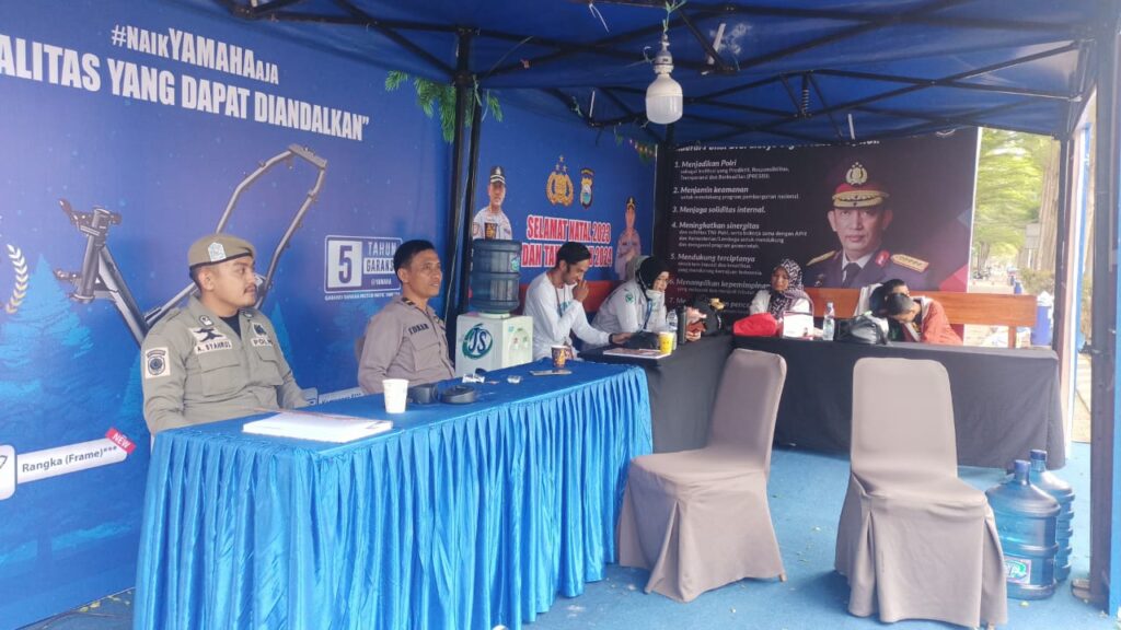 Ket. Gambar : Saat personel Satpol PP Makassar Bersama TNI-Polri Laksanakan Kegiatan Posko pengamanan Natal dan Tahun Baru 2024