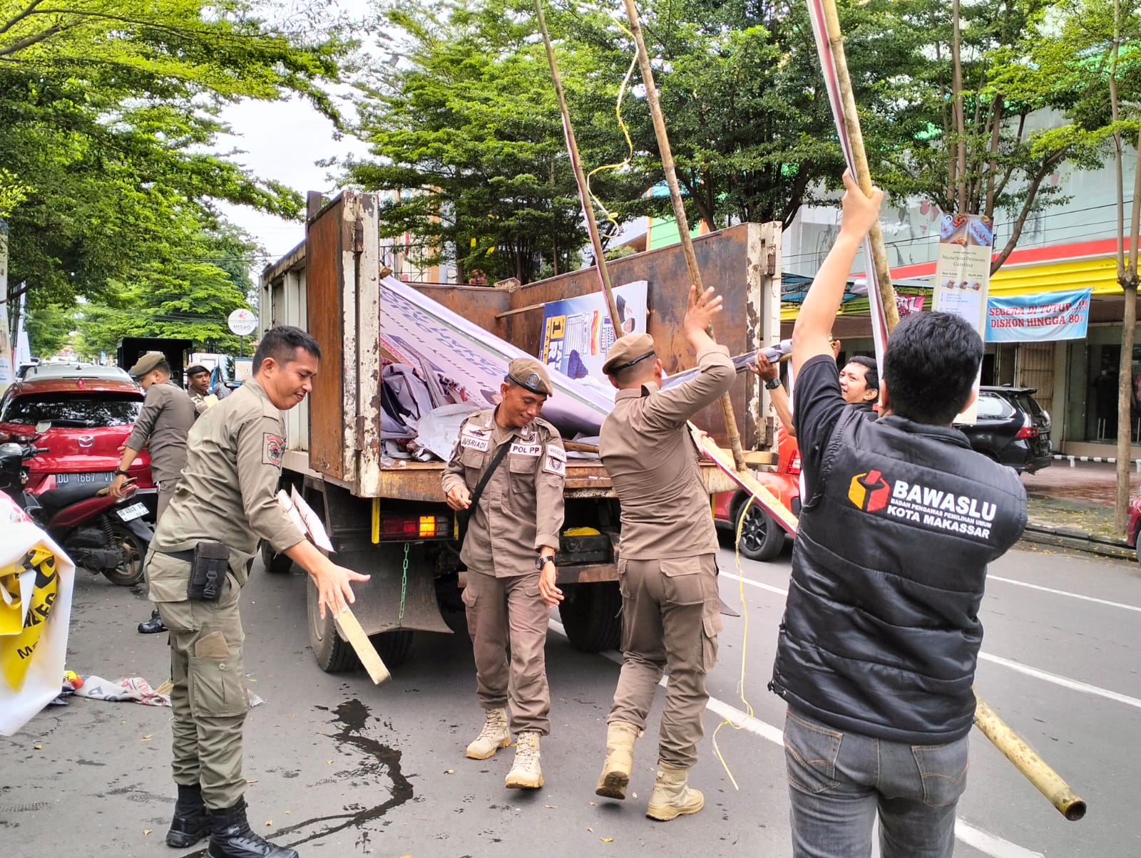Memasuki Masa Tenang Pemilu Bawaslu-Satpol PP Makassar Bersinergi Tertibkan APK