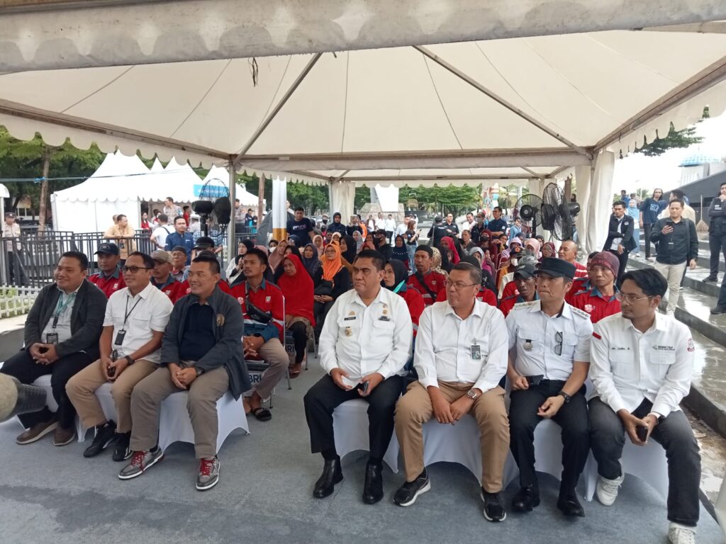 Dalam pantauan awak media SimakBerita.com sebanyak 1.500 paket bantuan sembako dibagikan kepada warga Kecamatan Mariso Kota Makassar di Anjungan Losari, Rabu (27/03/2024).