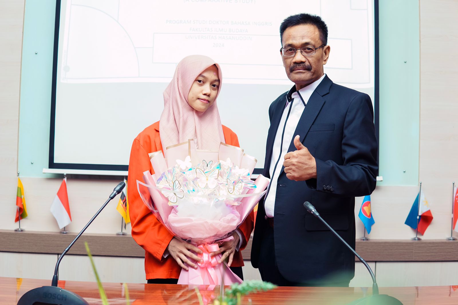 SIMAKBERITA.COM, MAKASSAR – Jurusan Bahasa Inggris Fakultas Ilmu Budaya (FIB) Universitas Hasanuddin (Unhas) sukses menggelar Promosi Doktor (S3) Jumat, (17/5/2024) di ruang Senat FIB Unhas atas nama Andi Elsa Fadhilah Sakti atau biasa dipanggil Elsa. Putri Prof Dr Sukardi Weda ini berhasil menyelesaikan Program S3-nya di FIB Unhas dengan topik penelitian bullying. Andi Elsa Fadhilah Sakti tercatat sebagai Doktor Pertama ELS FIB Unhas sekaligus sebagai Doktor termuda yang pernah dihasilkan Universitas Hasanuddin (Unhas) selama ini. Gadis kelahiran Soppeng 9 Oktober 1996 tersebut, berhasil meraih gelar akademik tertinggi, Doktor dalam Program Studi Bahasa Inggris (English Language Studies/ELS).