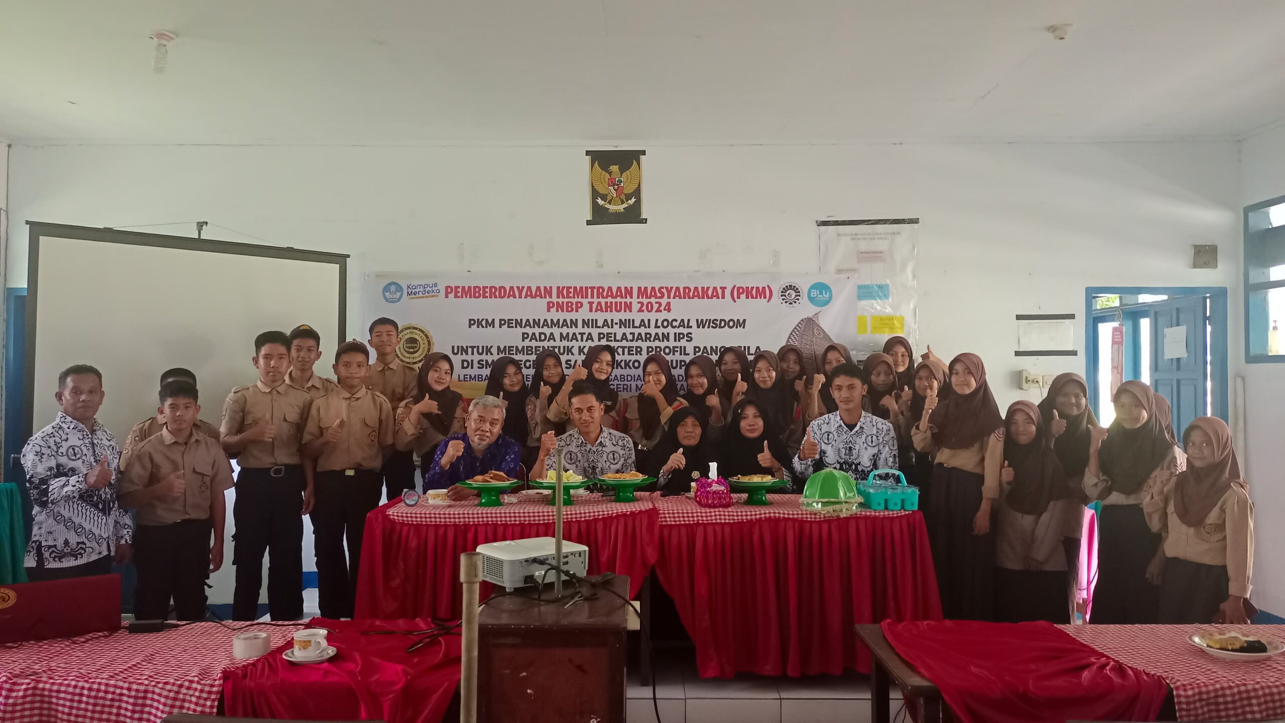 Pelaksanaan PKM mengusung tema “Penanaman Nilai-Nilai Local Wisdom pada Mata Pelajaran IPS untuk Membentuk Karakter Profil Pancasila di SMP Negeri 3 Salomekko Kabupaten Bone” yang bertujuan untuk memberikan wawasan peserta didik tentang kearifan lokal khususnya Sulawesi Selatan dan karakter profil Pancasila serta melatih keterampilan peserta didik dalam pengimplementasian pada pembelajaran IPS.