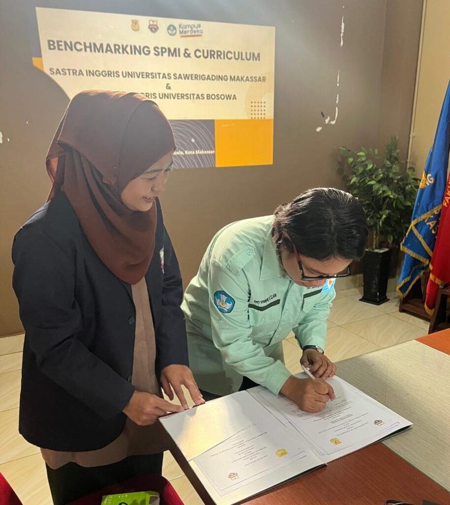 Ketua Prodi Pendidikan Bahasa Inggris Nana Erna, S.Pd., M.Pd menandatangani MoA antar Prodi Pendidikan Bahasa Inggris UNSA & Prodi Sastra Inggris UNIBOS.