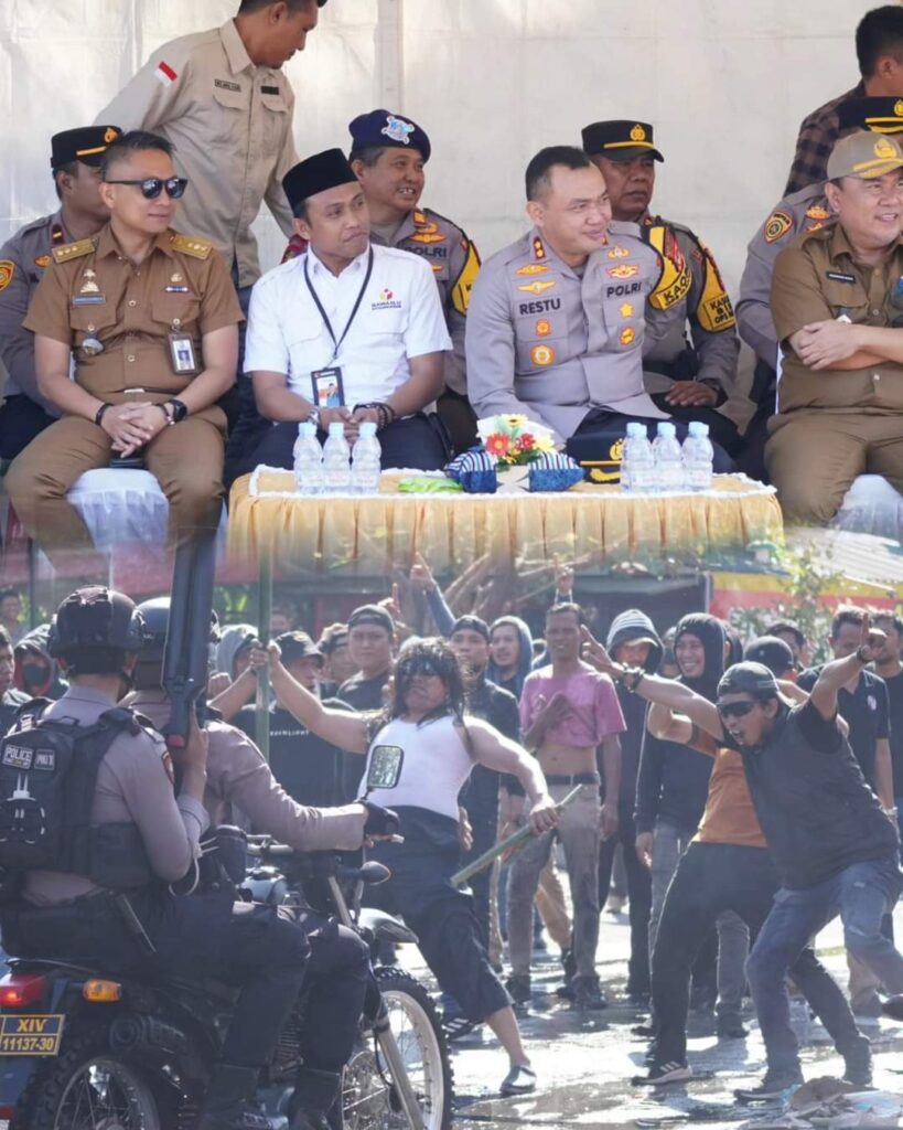 Polres Pelabuhan Makassar menggelar simulasi Sistem Pengamanan Kota (Sispamkota) sebagai bagian dari persiapan menjelang Pilkada 2024 -2025. Kegiatan ini berlangsung di depan Kantor Polres Pelabuhan Makassar, jalan Ujung Pandang Kelurahan Bulo Gading, Kecamatan Ujung Pandang, Selasa (20/8/2024).