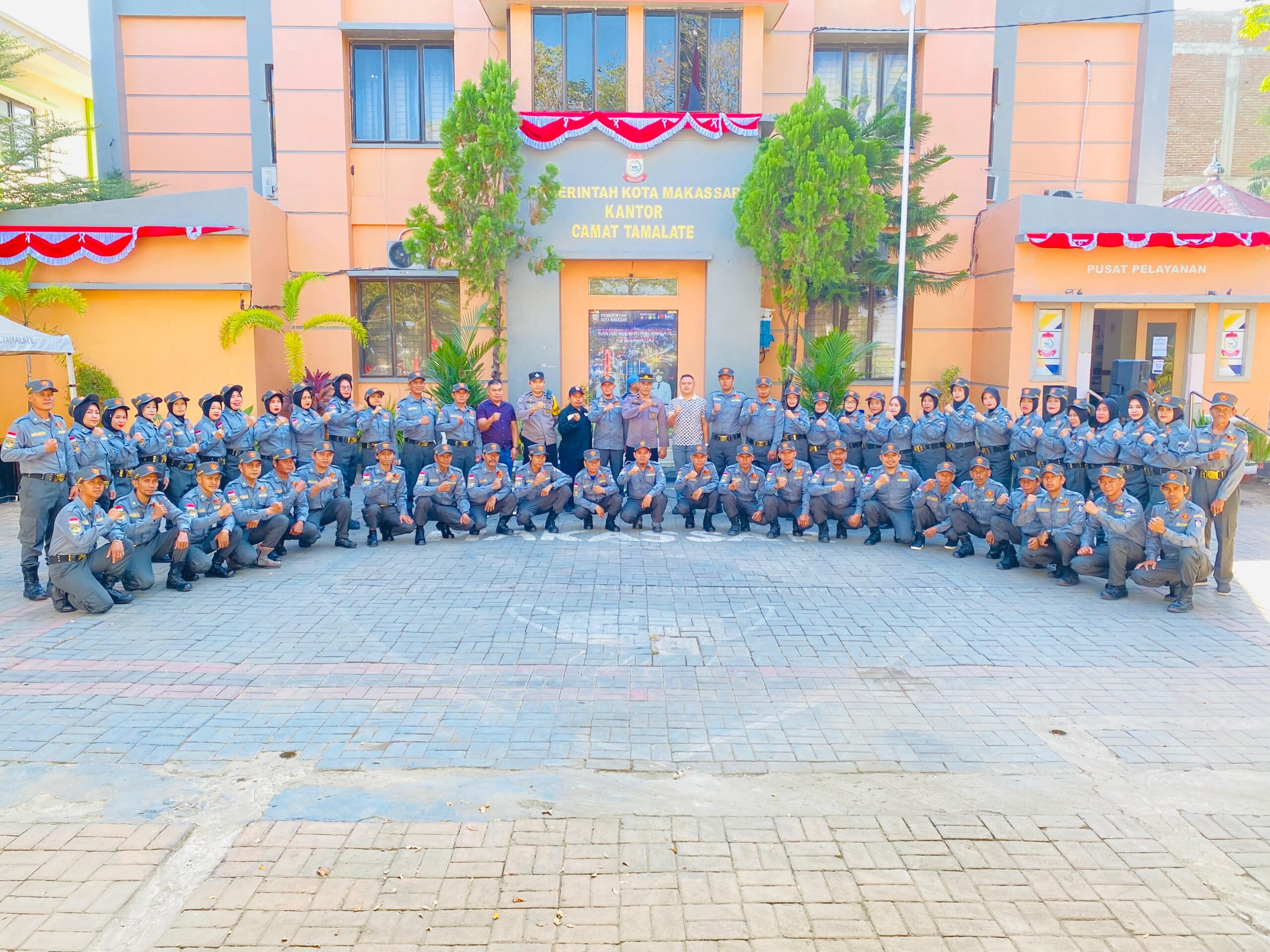 Saat Kabid Satlinmas Satpol PP kota Makassar, Winardi berpose dengan personil Satlinmas Kecamatan Tamalate (Sumber poto : istimewa)
