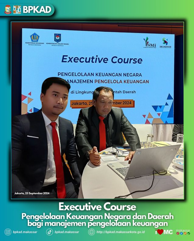 SIMAKBERITA.COM, JAKARTA – Kepala Badan Pengelolaan Keuangan dan Aset Daerah (BPKAD) Kota Makassar, Drs. Muhammad Dakhlan, M.Si menghadiri Executive Course Pengelolaan Keuangan Negara dan Daerah bagi manajemen Pengelolaan Keuangan, Jakarta (03/10/2024).