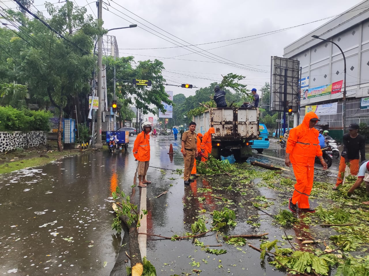 Lurah Bontoala Bersinergi Kasi Kebersihan Gerak Cepat Lakukan Evakuasi Pohon Tumbang