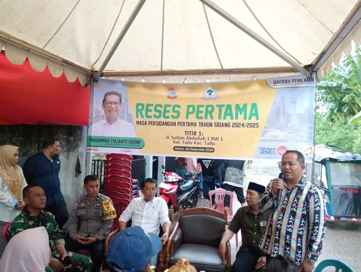 SIMAKBERITA.COM, MAKASSAR – Lurah Tallo  Zainal S.Pi, M.Si Menghadiri Reses yang dilaksanakan oleh Anggota DPRD Kota Makassar Muhammad Yulianto Badwi, bertempat di Jalan Sultan Abdullah.I RW.01 Kel.Tallo Kecamatan.Tallo Kota Makassar, Kamis (05/12/2024).