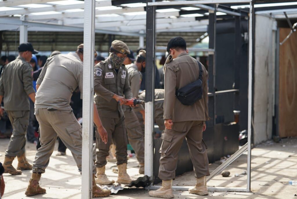 Personil Satpol PP Makassar Tertibkan Bangunan Liar di Jalan Metro Tanjung Bunga