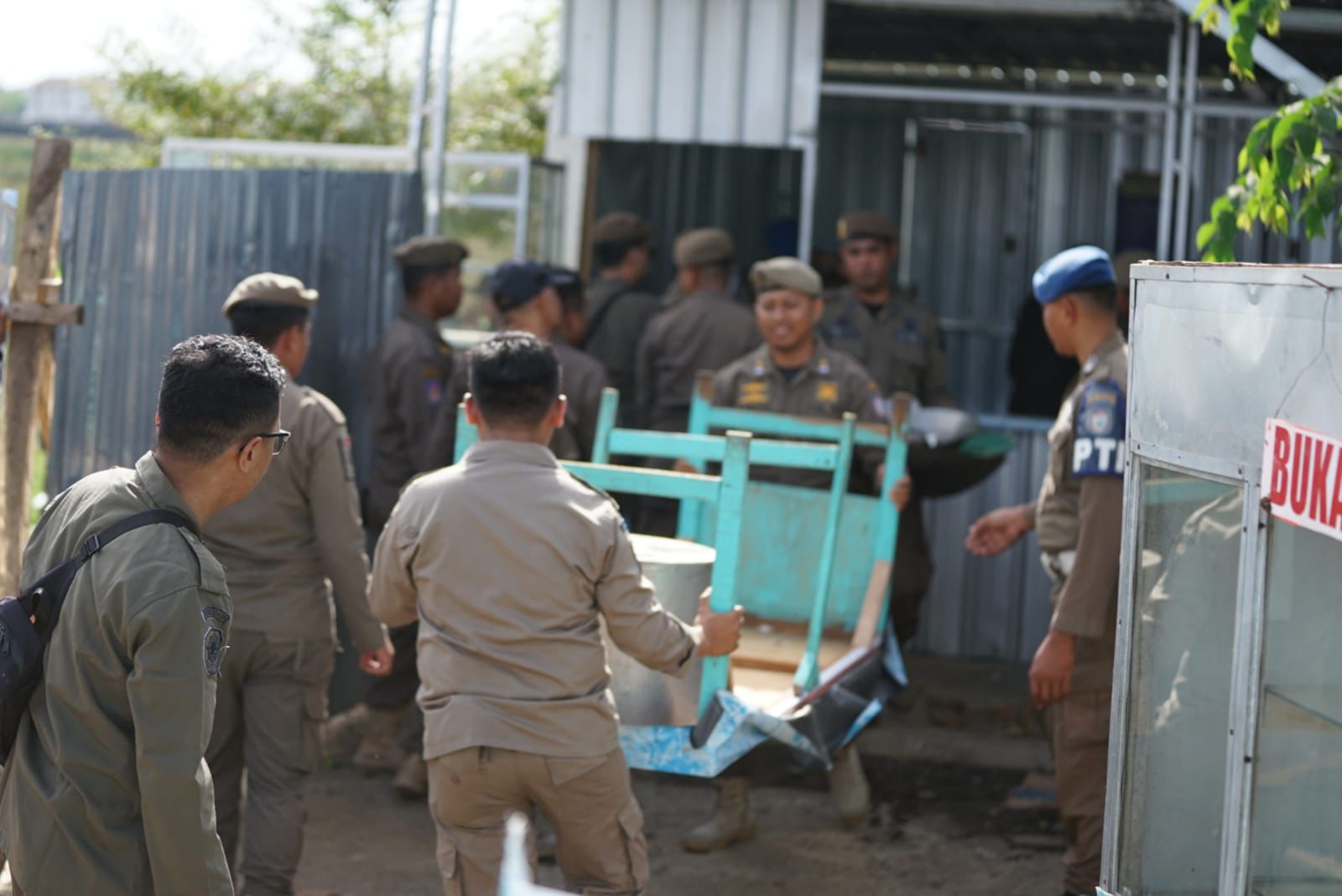 Personil Satpol PP Makassar Tertibkan Bangunan Liar di Jalan Metro Tanjung Bunga