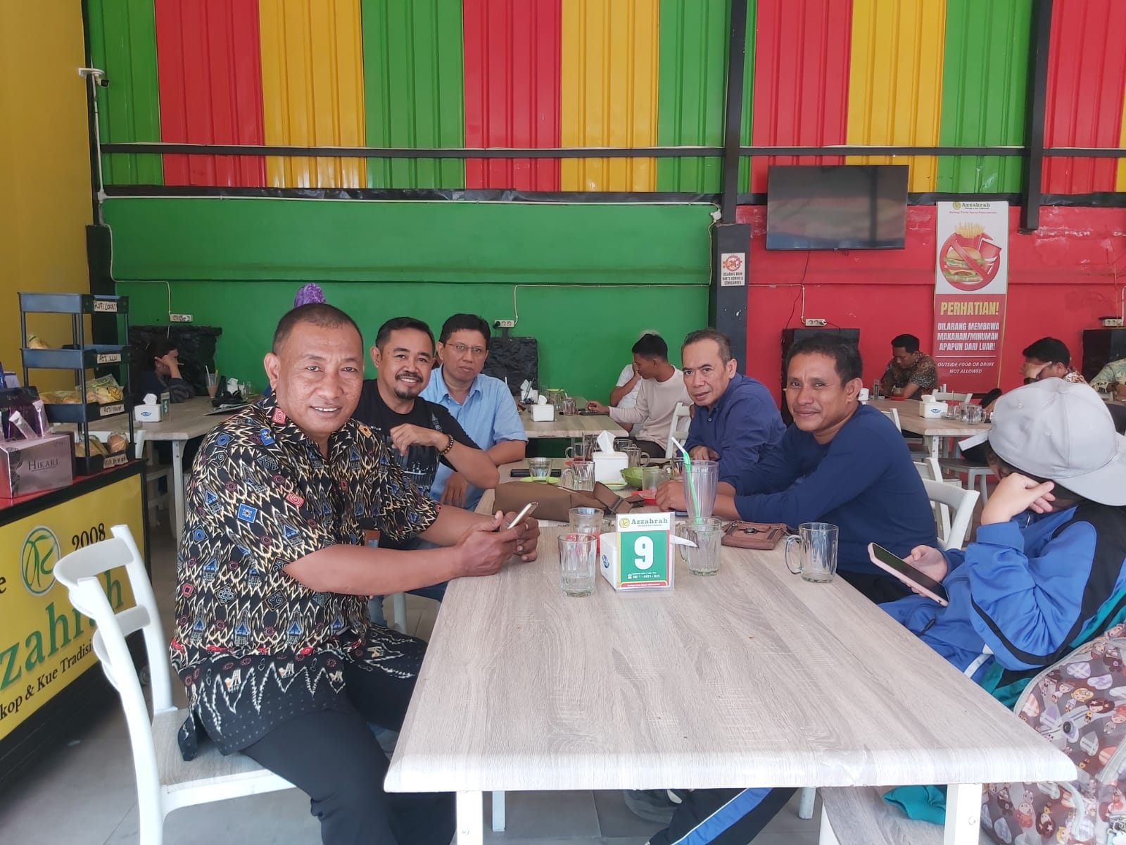 Juhanis didampingi Abd Rahman Sijaya, dan Udin, diterima Wakil Ketua SMSI Sulsel, Ikhsan Djirong, Sekretaris H. Mappiar HS dan Wakil Sekretaris, Nursyahril, di Cafe Azzahrah RRI, Jl. Ahmad Yani, Makassar, Kamis (9/10/2025).