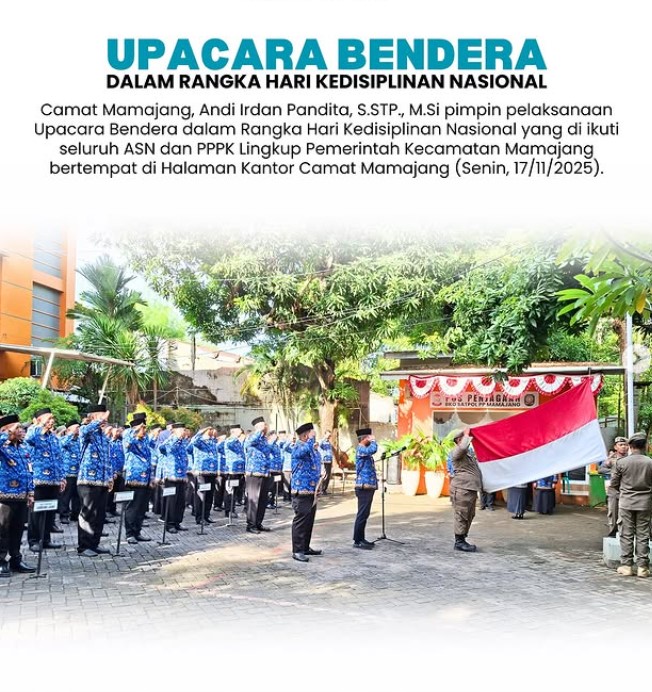 Upacara berlangsung tertib dan khidmat, diikuti dengan doa bersama sebagai penutup. Kegiatan ini menjadi momentum konsolidasi bagi seluruh aparatur untuk memperkokoh kedisiplinan sekaligus menyatukan langkah dalam meningkatkan performa kerja di lingkungan Pemerintah Kecamatan Mamajang. (*)