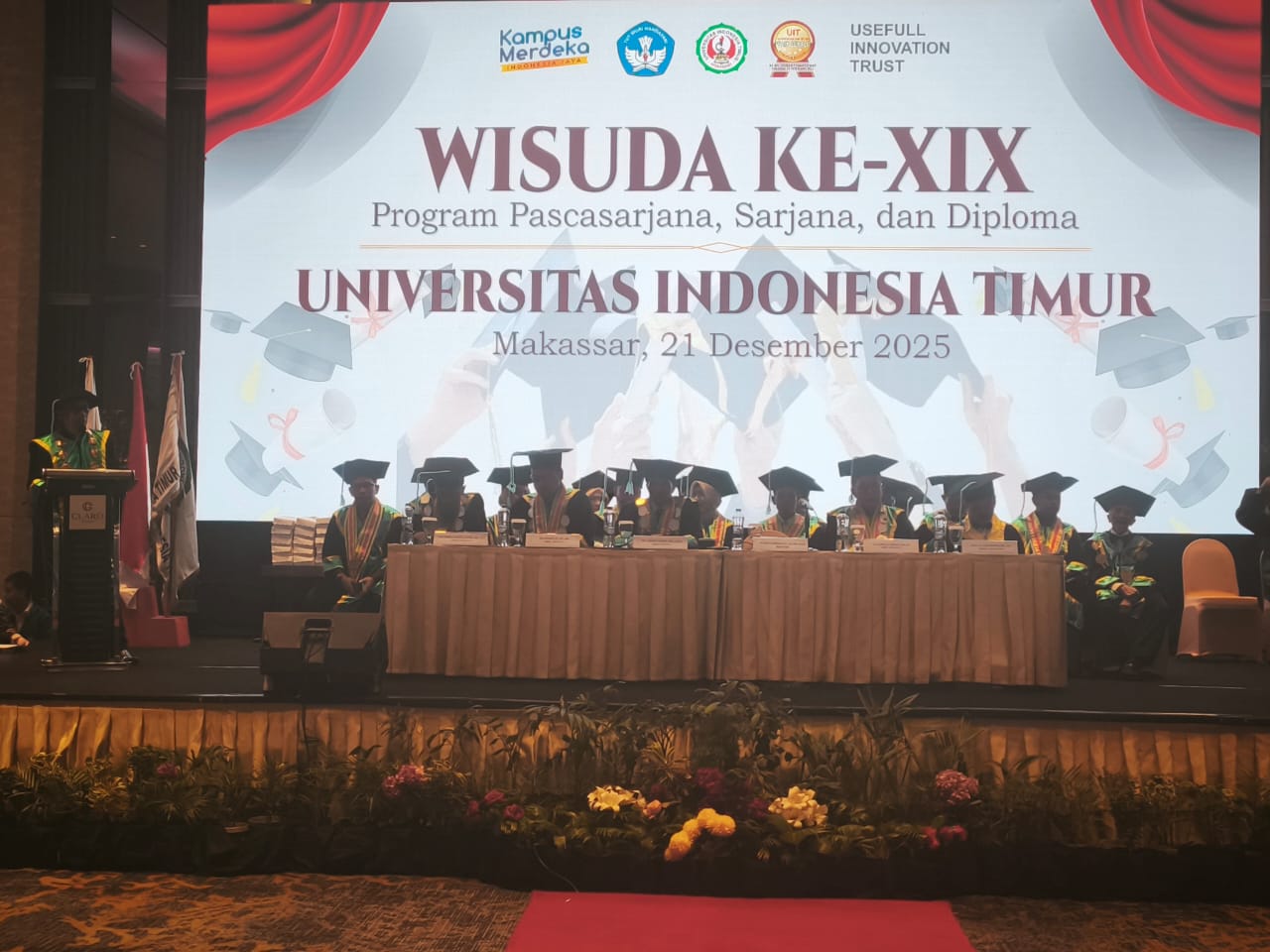 SIMAKBERITA.COM, MAKASSAR – Universitas Indonesia Timur (UIT) Makassar mewisuda 643 orang lulusan Pascasarjana, Sarjana dan Diploma DIII, dalam upacara Wisuda ke-19 di Hotel Claro Makassar, Minggu (21/12/ 2025).