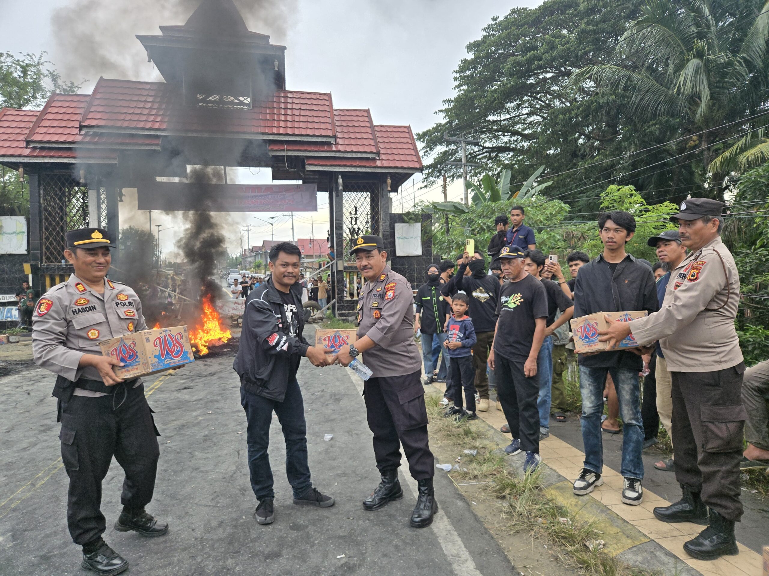 Humanis, Polisi Bagikan Air Mineral Kepada Massa UNRAS Provinsi Luwu Raya