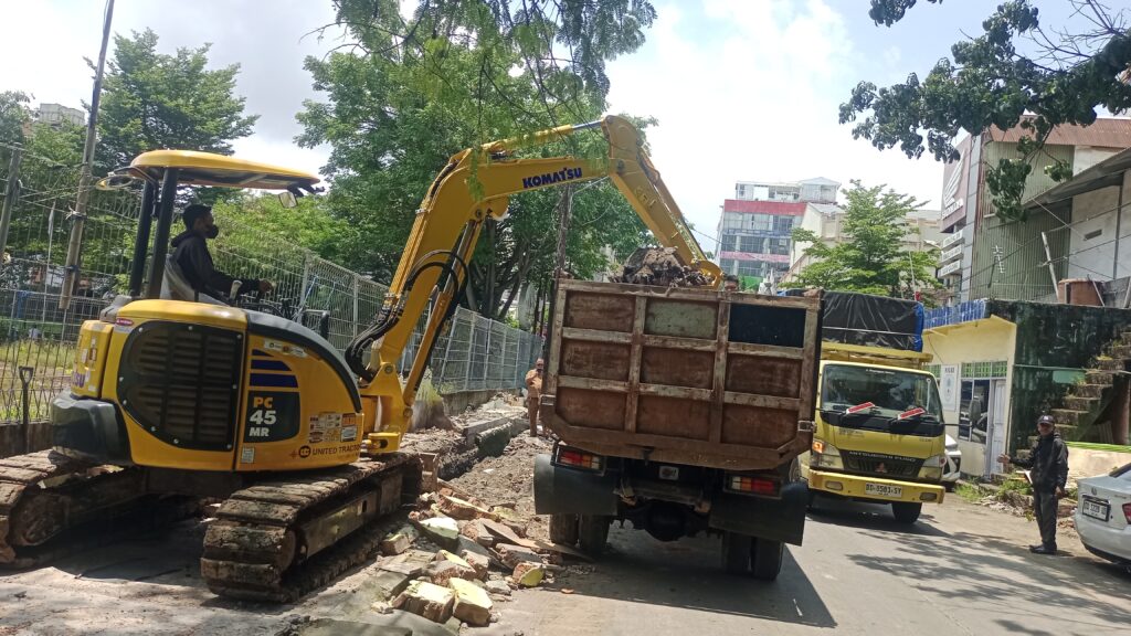 Usai Penertiban Lapak PKL, Dinas PU Makassar Laksanakan Pengerukan Drainase di Kelurahan Mampu