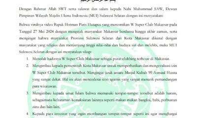 SIMAKBERITA.COM, MAKASSAR – Dewan Pimpinan Majelis Ulama Sulawesi Selatan (Sulsel) merespon kehadiran Tempat hiburan malam (THM) W Super Club di Makassar milik Pengacara kondang, Hotman Paris....