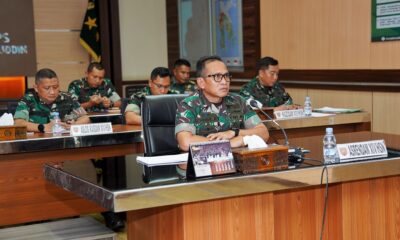 SIMAKBERITA.COM, MAKASSAR – Asisten Perencanaan Kodam (Asrendam) XIV/Hasanuddin Kolonel Inf Choirul Anwar, S.Sos., didampingi para Asisten dan Kazidam XIV/Hasanuddin, mengikuti Vicon Rencana Pembentukan 100 Batalyon TA....