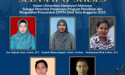 SIMAKBERITA.COM, MAKASSAR – Universitas Handayani Makassar (UHM) kembali mencatatkan prestasi akademik di tingkat nasional. Lima dosen UHM berhasil meraih pendanaan Program Penelitian dan Pengabdian kepada Masyarakat...
