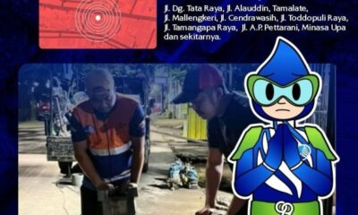 SIMAKBERITA.COM, MAKASSAR – Perumda Air Minum (PDAM) Kota Makassar menyampaikan informasi perihal Pengerjaan Kebocoran Pipa PVC 600 mm yang berlokasi di Jalan Beringin (Inspeksi Kanal), Kabupaten...